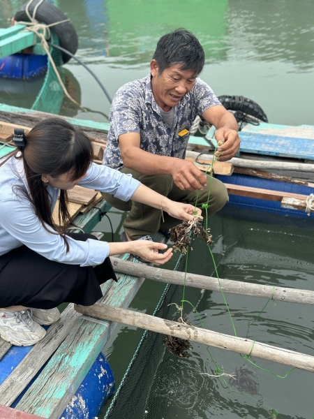 In October 2024, ICAFIS and JapiFoods, in coordination with the Hai Phong Sub-Department of Fisheries and the Cat Ba District People's Committee, conducted site assessments to evaluate the natural and climatic conditions for pilot seaweed cultivation in Cat Ba. The survey indicated that Kappaphycus alvarezii (cottonii) is highly suitable for integrated farming models within existing aquaculture rafts. Such integrated systems bring multiple benefits, including improved aquatic environmental quality, enhanced growth of aquatic species, and increased incomes for farmers.