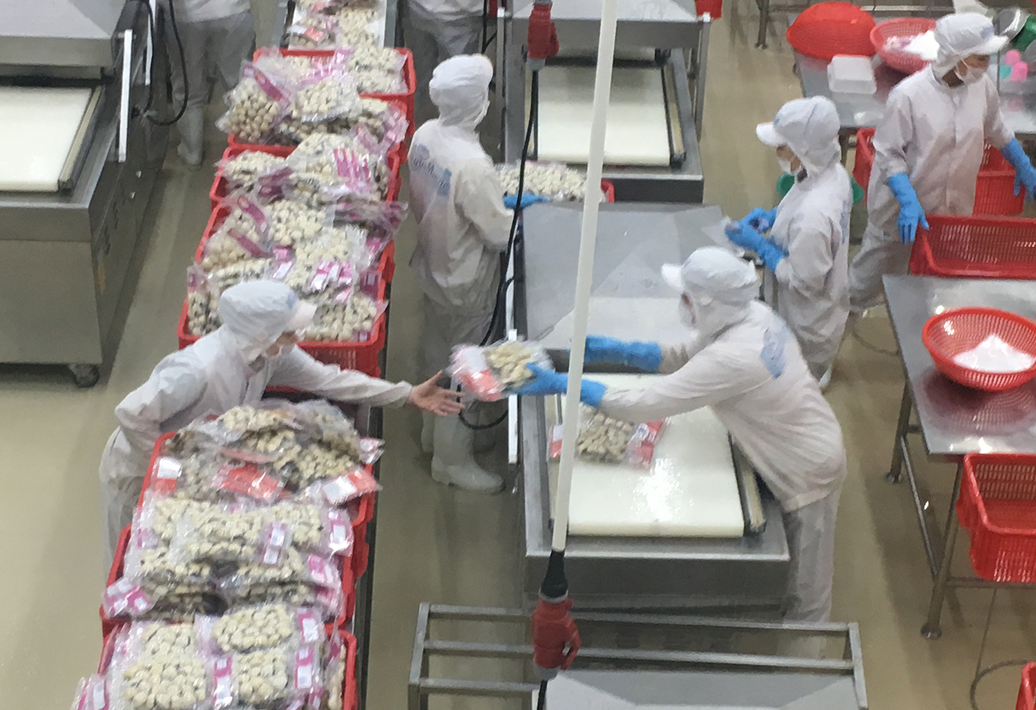 Nghêu đóng gói hút chân không ở nhà máy chế biến của Công ty Hưng Trường Phát.