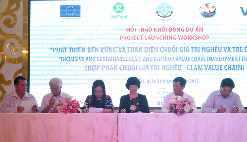 Dự án “Phát triển toàn diện và bền vững chuỗi giá trị nghêu và tre ở Việt Nam” do Oxfarm tại Việt Nam hợp tác với Trung tâm hợp tác Quốc tế nuôi trồng và khai thác thủy sản bền vững, Phòng Thương mại và Công nghiệp Việt Nam triển khai.
